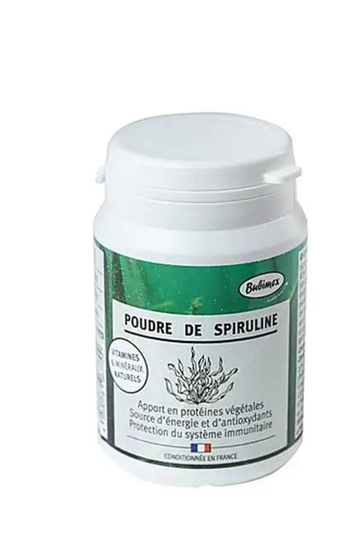 La poudre de spiruline Bubimex est un complément alimentaire 100% pur, durable et naturel. Riche en protéines végétales & nutriments, notamment en béta-carotène (Vitamine A) et chlorophylle.
