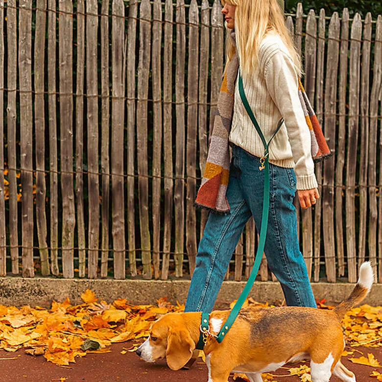 Enfin la couleur qui saura le mettre en valeur pour des promenades tout en élégance. Une démarche divine, une laisse bandoulière vert sapin so British, votre chien est paré pour aller défiler dans le quartier.